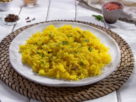 • يقدم مع الارز الابيض، ويزن بالبصل الاخضر و السمسم