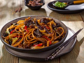 - في وعاء يتم خلط مكونات الصوص " صويا صوص لايت، صويا صوص دارك، سكر، خل الارز"