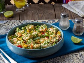 - يتم تقطيع الخس الي شرائح وضعها في وعاء التقديم