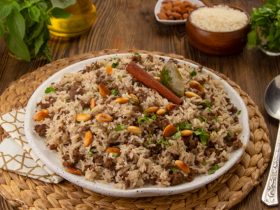- في صنيه خبز نضع طبقات من المسقط واللحم والصلصه وتغطي بالبشامل في الفرن