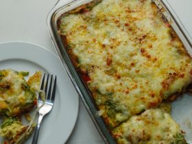 - يسكب في طاجن ويوضع بالفرن حتى النضج
