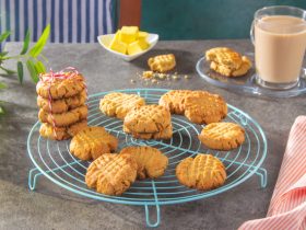 - ونقلب المكونات معا حتى تمتزج ونضعها فى قوالب الفرن