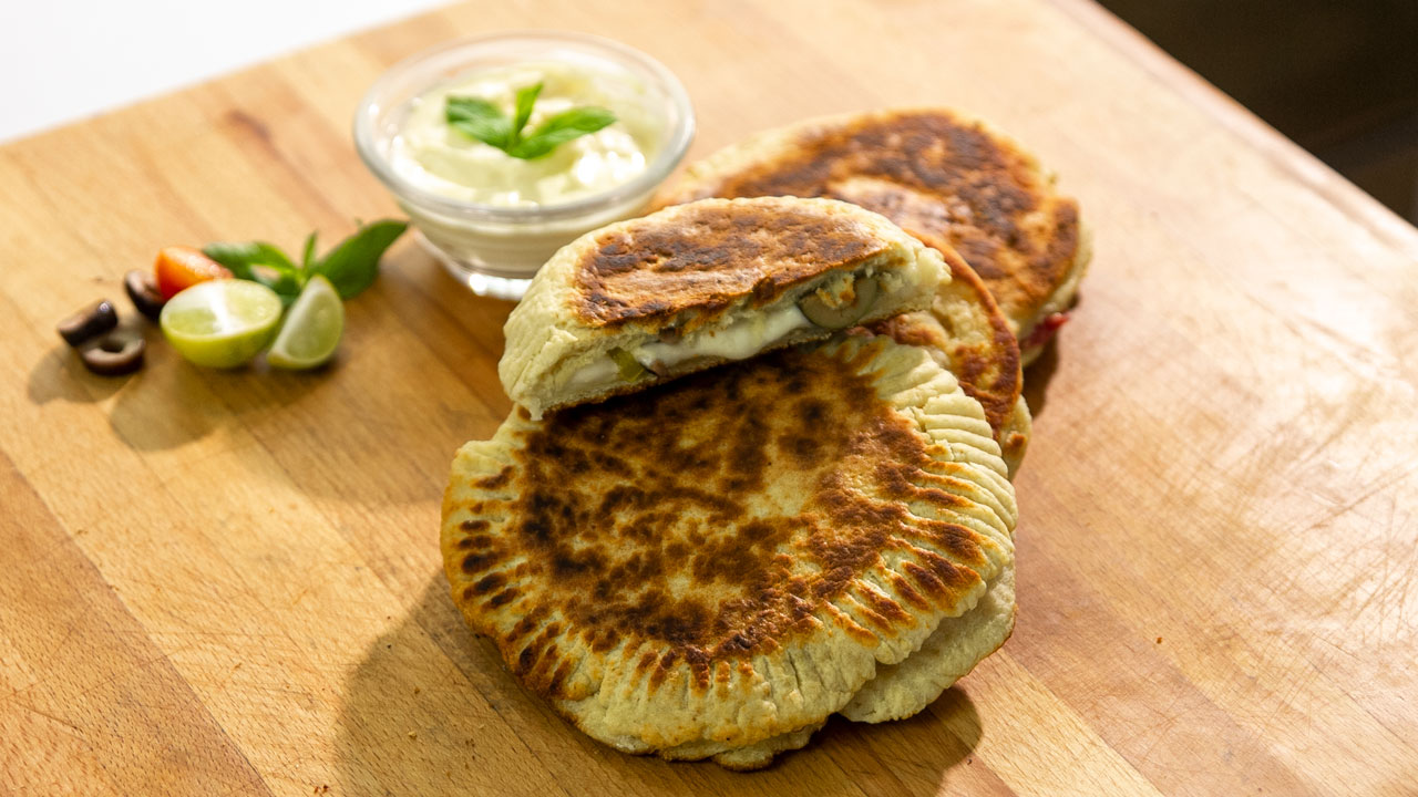 - ونفردهم ونضع على واحدة الحشو ثم نضع واحدة اخرى من العجين عليها