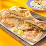 - ونضع واحدة من الرقاق ونرشها بالزبدة وندهنها بحشوة الجبنة الكريمي