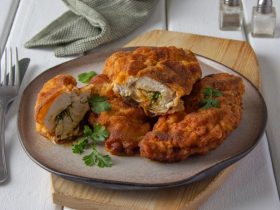 - نضع الخليط في الكريب ونلفة بالخليط ويقدم ويزيين بالبقدونس ويمكن ان ندخلة الفرن قليلا قبل التقديم