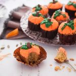 - للتزيين : نضع فوق الكبك كيك كريمة زبدة باللون الاورنج ثم ناخذ الكب كيك ويغمس في السكر الملون وبالمعلقة نرسم خطوط حتي تصبح علي شكل القرع العسل ثم نشكل بعجين السكر البني راس القرع العسل واللون الاخضر نشكل فرعين الشجر ويقدم وبالهنا والشفا