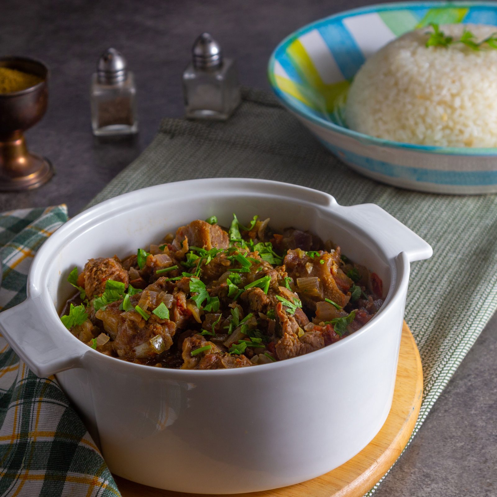 - نضع الطماطم والفلفل الاسود قبل تمام التسوية ب 15 دقيقة ثم تقدم مع ارز ابيض.