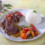 - بعد نضوج اللحمة نضيف بطاطس مكعبات مقلية - اختياري-