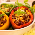 - يتم تفريغ قلب الفلفل و دهنة بقليل من الزيت و وضعة في الفرن