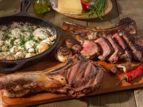 - بعد حوالي 5 دقائق يمكن ان نقلب الريش وشرائح اللحم والكفتة علي الوجه الاخر