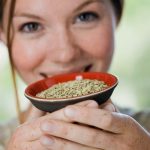 - في وعاء نسكب الارز و الخضروات"شبت، بقدونس، كزبرة" و يتم اضافة الصلصة و نقلب جيدا حتى تندمج جميع المكونات معا.