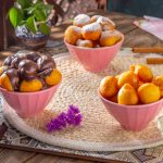 - رابعا :بعد ما احط المنكهات اللي عايزها هجيب صينيه كب كيك وادهنها بالزيت بحيث تطلع معي بسبوسه كده صغيره بنكهات مختلفه بعد ما دهنت الصينية بالزيت هاحط بقى الخليط بتاعي
