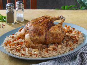 - تدخل فرن سخن مسبقا علي درجه حراره 180 درجة مئوية لمده 20 دقيقة و تشغل الشواية 10 دقائق إضافية حتي تاخذ اللون الذهبي. و تقدم