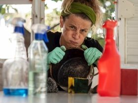 - اتركي المكواة لتبرد، ثم افركي العجينة على المنطقة المراد تنظيفها حتى تزول أي آثار عالقة بها.