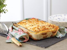 - تخلط الزبدة بالكنافة و تفرد فى قاع الصينية ذات جوانب قابلة للفك