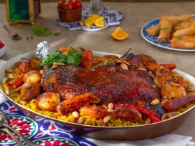 - يسكب الشربات علي البسبوسه ساخنه ويغطي لمدة ١٠ دقائق