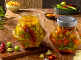 - 1 عدد فلفل ألوان (أخضر وأصفر) مقطع