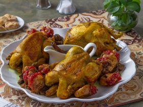 - يغرف في طبق التقديم ثم نرش البقدونس على الوجه ويقدم وبألف هنا.
