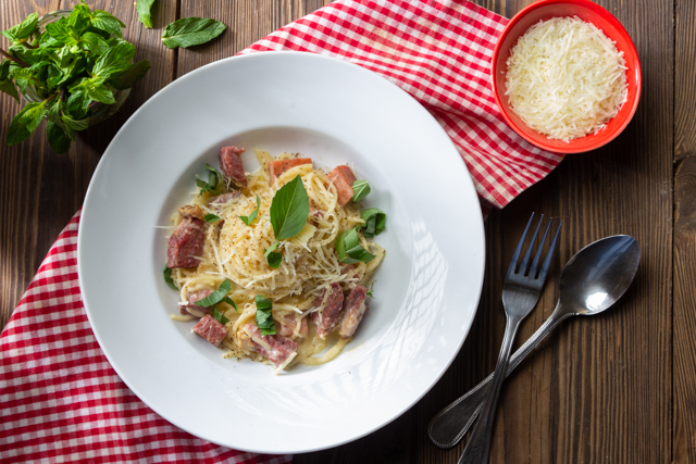 Print باستا كربونارا وجبة مكرونة مطبخ Italian مدة الإعداد 15 دقائق دقائق مدة الطبخ 20 دقائق دقائق Servings 2 Author مصطفي علواني المقادير400 جرام مكرونه اسباكيتي3 عدد بيض½ كوب كريمه لباني½ كوب جبنه برميزان مبشوره100 جرام جبنه بيكو رينو مبشوره½ معلقة صغيرة فلفل اسودزيت زيتون¼ كيلو بيف بيكون¼ كيلو ...