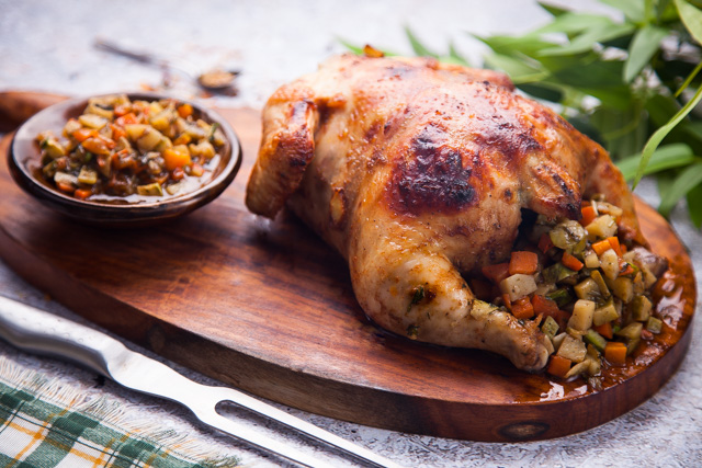 Print Pin دجاج محشي بالخضار مطبخ دواجن, طبق رئيسي, مطبخ مغربي, وجبة الغذاء مدة الإعداد 15 دقائق دقائق مدة الطبخ 45 دقائق دقائق الوقت الكلي 1 ساعة ساعة Servings 4 المقادير1 عدد دجاج سليمة2 حبة بطاطس مقطعة مكعبات2 حبة جزر مقطعة مكعبات2 ملعقة بقدونس3 ملعقة ليمون مخلل3 فص ثوم مفروم1 ملعقة فلفل اسود1 ملعقة جنزبيل1 ملعقة بابريكيا1 ملعقة كمون1 ملعقة ملح2 ملعقة طماطم صلصلة2 عدد ليمون عصير1 ملعقة سكر الخطواتتغسل الدجاجة جيداً وتتبل بالصلصة والسكر ...