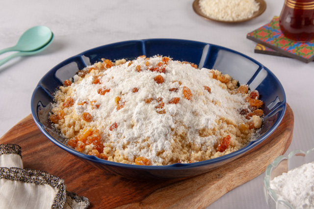 Print Pin الكسكسي مطبخ حلويات, طبق جانبى, مطبخ مغربي, وجبة الافطار, وجبة العشاء المقادير1 كيلو دقيق1/2 كوب سمنة سايحه1 معلقه ملح1 معلقه سكرماء للعجن1/2 كوب سكر بودرهزبيبجوز هند الخطواتنخلط الماء مع السكر والملح ثم نندي الدقيق حبه حبه ونفرك باليدين حتي يصبح لدينا بالورات او حبيباتثم نقلب الزبده ونبس مره اخريوبعد ذلك ...