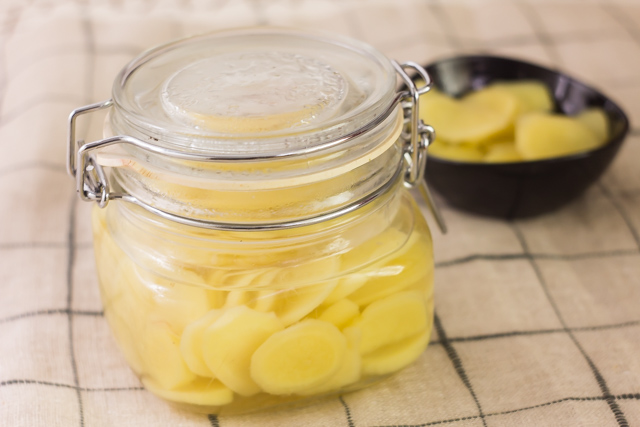 Print Pin مخلل جنزبيل وجبة سلطة و مقبلات مطبخ طبق جانبى مدة الإعداد 10 دقائق دقائق مدة الطبخ 15 دقائق دقائق الوقت الكلي 25 دقائق دقائق Servings 4 المقادير1/2 كيلو جنزبيل فريش1 كوب خل ابيض1/2 كوب سكر1/2 ملعقة صغيرة ملح2 كوب ماء مغلى الخطواتيتم غسل الجنزبيل جيدا و ...