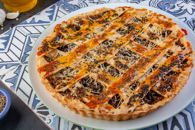 Print Pin تارت بالزعلوك واللحم المفروم مطبخ طبق رئيسي, لحوم, مطبخ مغربي, وجبة الغذاء مدة الإعداد 15 دقائق دقائق مدة الطبخ 45 دقائق دقائق الوقت الكلي 1 ساعة ساعة Servings 4 المقادير2 معلقة كبيرة زيت4 فص ثوم مفروم1 قرن فلفل حار مقطع1 كوب طماطم مبشورةبقدونس1 معلقة صغيرة ملح1 معلقة صغيرة كمون1 معلقة صغيرة بابريكا1 معلقة صغيرة فلفل أسودباذنجان مقلي ومفروم1/4 كيلو لحم ...