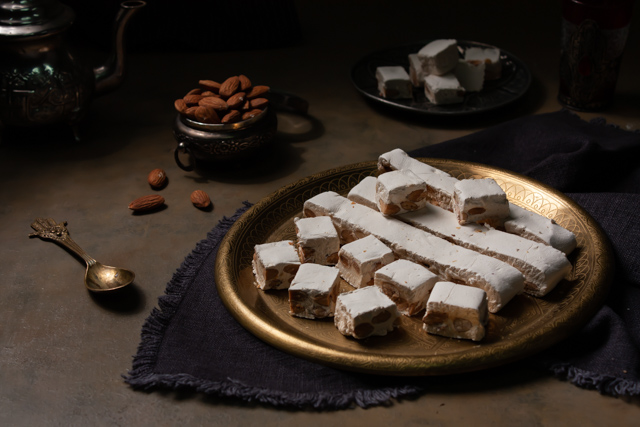 Print Pin نوجة باللوز مطبخ حلويات مدة الإعداد 15 دقائق دقائق مدة الطبخ 15 دقائق دقائق الوقت الكلي 30 دقائق دقائق Servings 4 المقادير420 جرام سكر ابيض مقسم على جزئين 400 جرام و20 جرام100 جرام جلوكوز سائل125 جرام عسل2 عدد ابيض بيض1 معلقة كبيرة روح لوزماءللحشو1-2 كوب لوز محمصللتغليف1/3-1/4 كوب سكر بودرة الخطواتفي كسرولة على النار نضع 400 جرام ...
