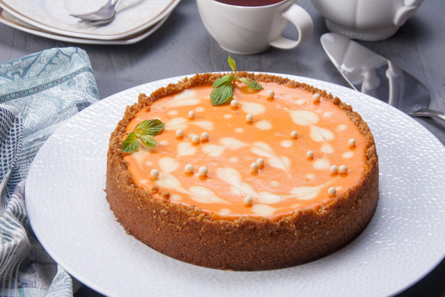 Print Pin تشيز كيك بالبرتقال مطبخ حلويات مدة الإعداد 15 دقائق دقائق مدة الطبخ 1 ساعة ساعة الوقت الكلي 1 ساعة ساعة 15 دقائق دقائق Servings 5 المقاديرللقاعدة200 جرام بسكويت سادة90 جرام زبدةلخليط التشيز كيك700 جرام جبنة كريمي بدرجة حرارة الغرفة150 جرام سكر1 معلقة كبيرة بشر برتقالفانيليا30 جرام دقيق2 عدد بيض2 عدد صفار بيض320 جرام ساور كريم (كريمة حامضية)لون طعام غذائي برتقالي ...