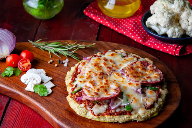 Print Pin بيتزا القرنبيط وجبة اكلات سريعة مطبخ خضروات, صحي و دايت, لحوم, مطبخ شرقى, وجبة العشاء, وجبة الغذاء المقادير١ حبه قرنبيط وسط٢ عدد بيض حجم كبير 1 كوب جبنه موتزاريلا١ ملعقه صغيره ملح وفلفل أسود١ ملعقه صغيره زعتر1 كوب مشروم فريش٨ قطع سلامي اطياب1 كوب عصير طماطم٢ معلقة كبيرة صلصه طماطم1 كوب فلفل اخضر رومي1 كوب زيتون مخلي الخطواتنقوم بفرم القرنبيط ووضعه في الميكروويف او الفرن لمده ٤ ...