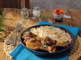 - نضعه في صينية بالفرن علي درجة حرارة 200 لمدة نصف ساعة